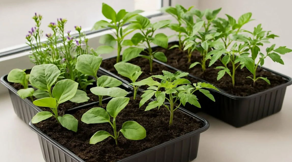 - для выращивания цветочной рассады (петунии, бархатцы, лобелия);
