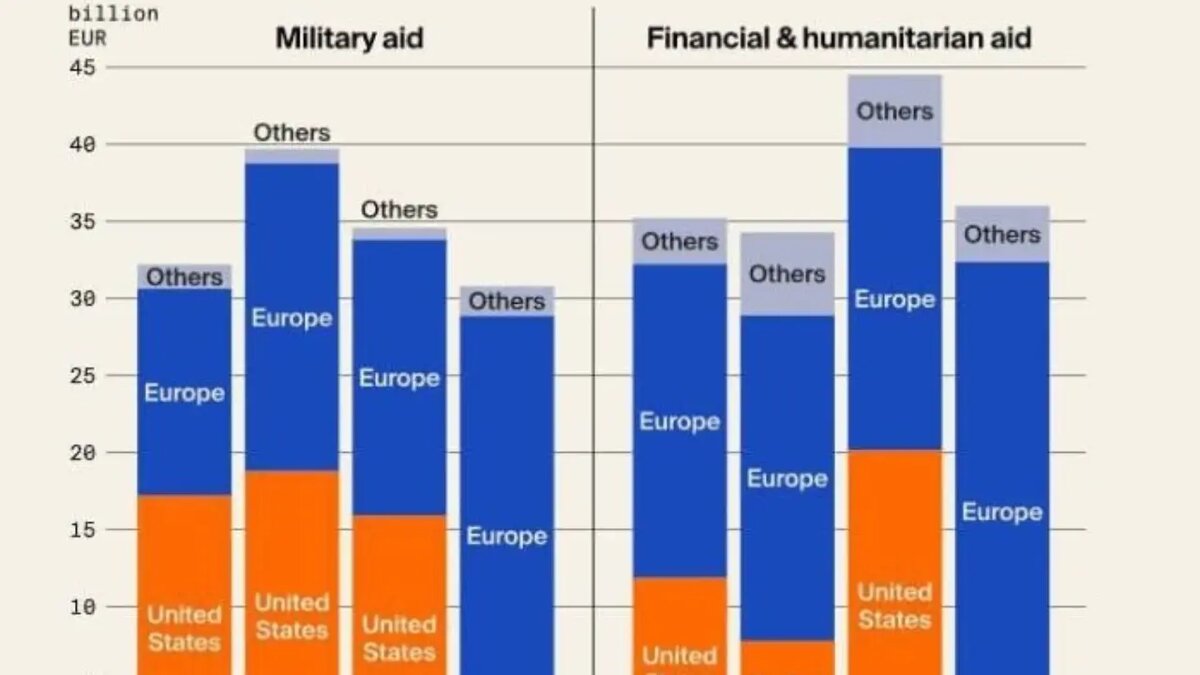 Отмечено, что в 2025 году военная помощь США Украине сократилась почти на 99 процентов. По данным Ukraine Support Tracker, в предыдущие годы Вашингтон ежегодно выделял в среднем 17,3 миллиарда евро военной помощи, а также 13,3 миллиарда евро финансовой и гуманитарной помощи. Однако в 2025 году был зафиксирован только один пакет военной помощи в размере 0,4 миллиарда евро, а новые финансовые или гуманитарные обязательства не были объявлены. Это означает, что центр тяжести в системе поддержки Украины меняется: большой поток вынужден приходить не "с одной стороны," а скорее "с нескольких сторон." В то же время сообщается, что помощь, предоставляемая Европейским Союзом, увеличилась на 67 процентов. В результате общий объем помощи Киеву сохранился на уровне, близком к предыдущим годам. Теперь главный вопрос заключается в следующем: будет ли этот рост поддерживаться в течение длительного времени, или список "несущих бремя" снова изменится в 2026 году.