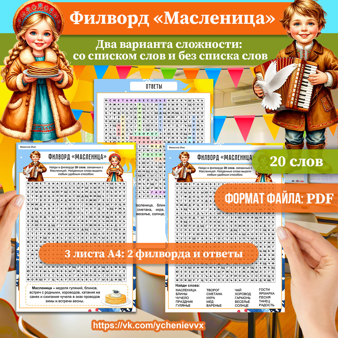 Филворд «Масленица» — идеальное решение для учителей начальных классов и педагогов дополнительного образования!