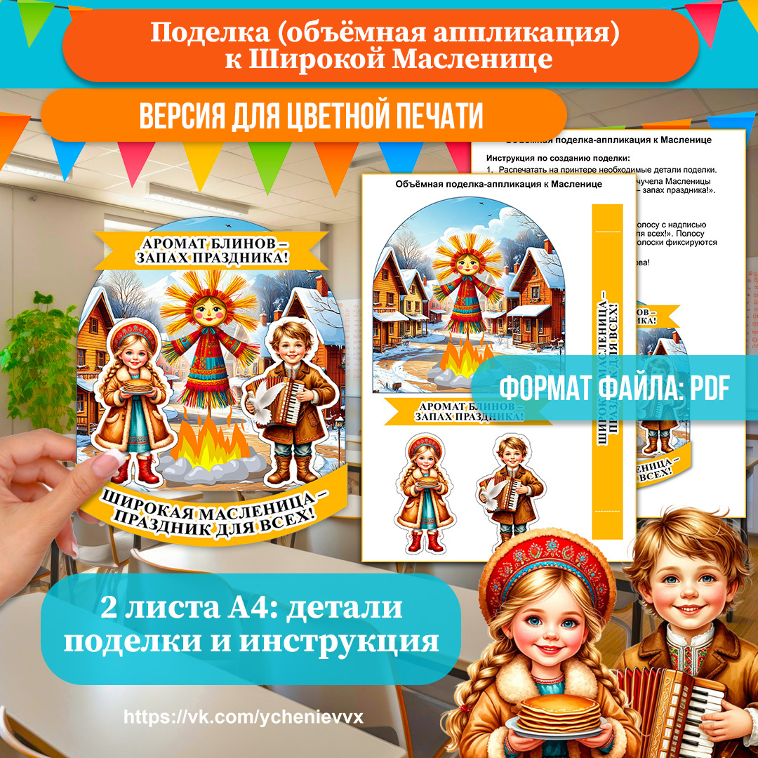 Хотите провести с учениками запоминающийся урок, посвящённый Масленице? Примените данный комплект для создания красочной объёмной аппликации — идеальное решение для учителей начальных классов и педагогов дополнительного образования!