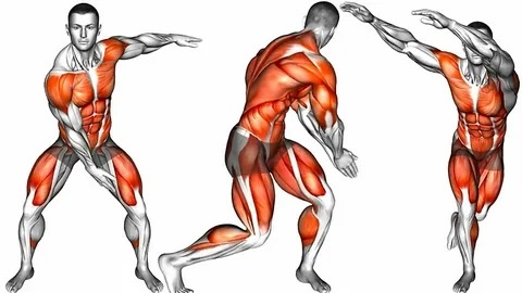 - Выпады в сторону (8-10 раз): Динамические боковые выпады. Отлично разогревают приводящие мышцы .