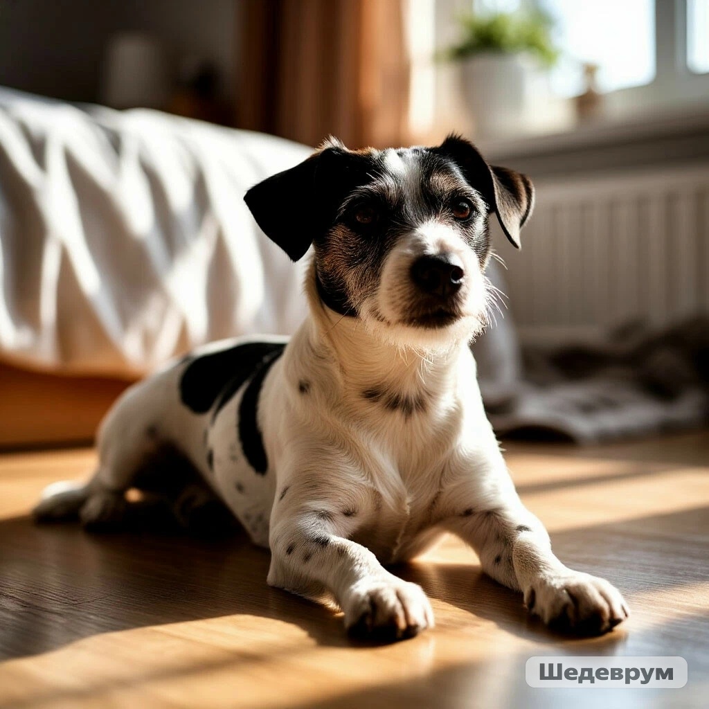 Джек-рассел с чёрными пятнами сидел рядом и смотрел с уважением.