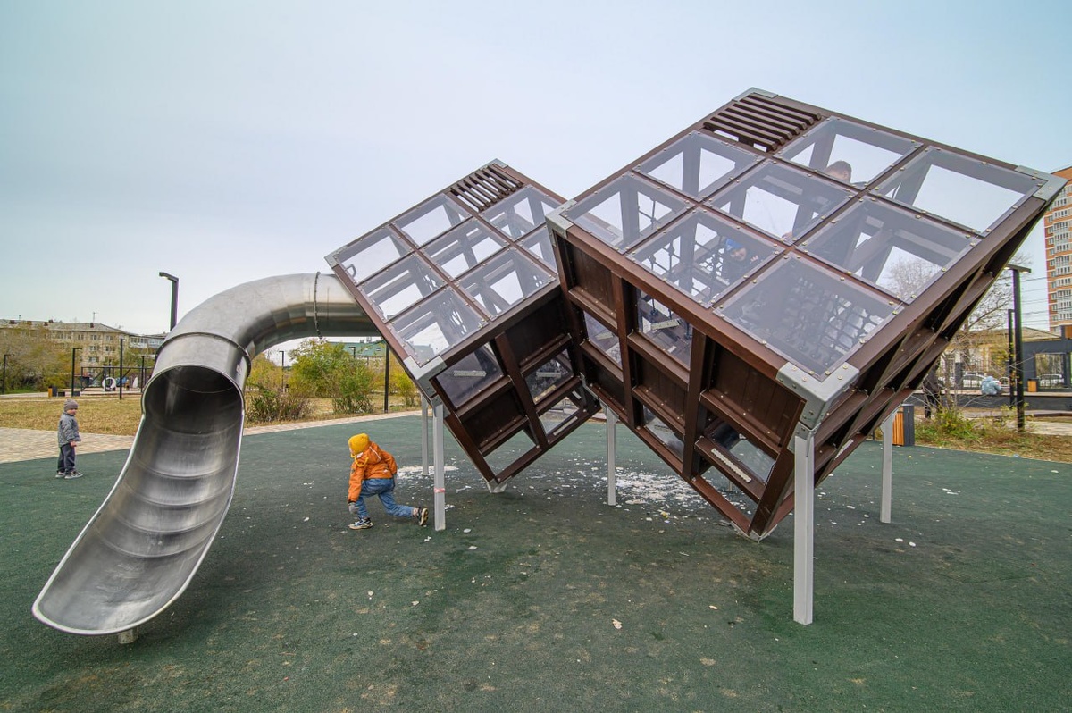 Парк МЖК в последние годы выглядел не очень презентабельно, и люди просили навести там порядок. Благоустройство начали в 2025 году. Контракт на благоустройство парка МЖК получила читинская компания АРМ-1: она единственная подала заявку на участие в торгах. За работу подрядчик должен был получить 98,8 млн рублей. В проекте парка были четыре спортивные площадки, площадка для выгула собак, сцена, памятник, игровые комплексы, подсветка на входах, общественный туалет. Как выглядит парк в реальности — в фоторепортаже @chitaru75. В центре игровой площадки построили кубы для лазания с горкой. Подобное поставили в Чите впервые. Почти сразу на ней получили травмы трое детей. Ещё до открытия с куба упал 10-летний мальчик и получил разрыв мягких тканей на ноге. Ему наложили швы, госпитализировали на 10 дней и на месяц запретили нагрузки. Из-за этого ребенок не мог ходить на тренировки ушу, пропустил соревнования и не попал в сборную. В конце сентября 10-летняя девочка вылетела из горки-трубы и сл