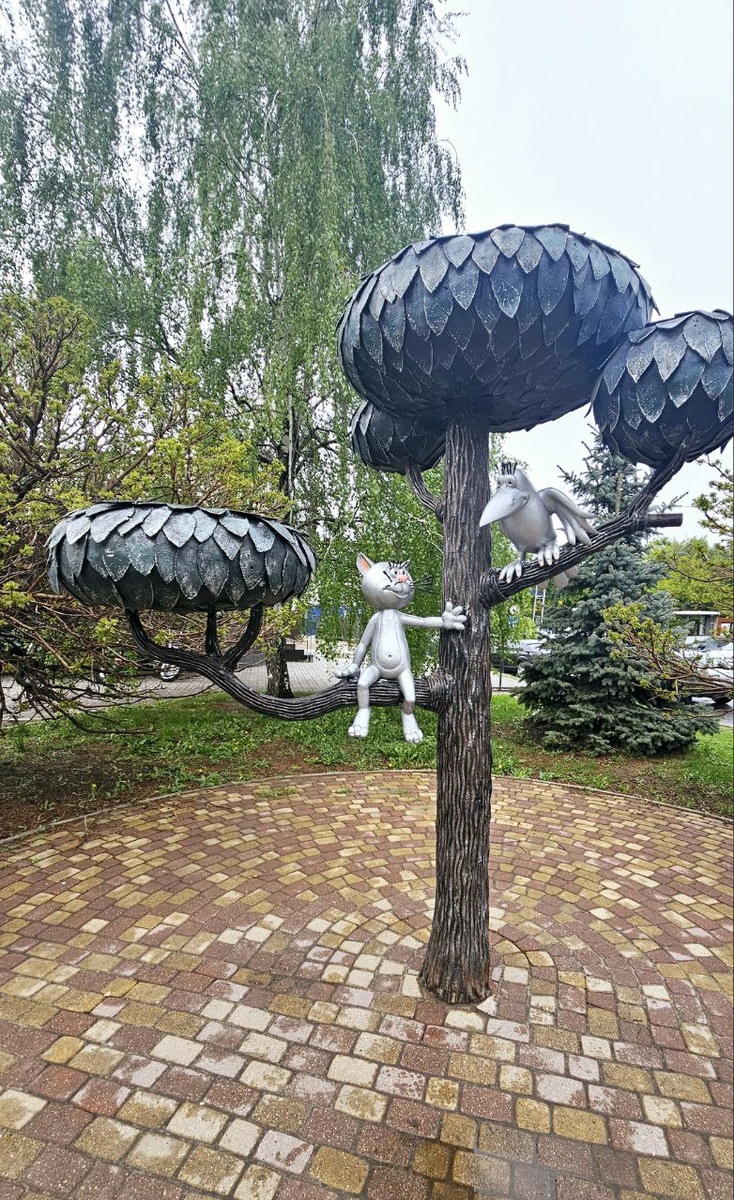 Первый стране посвящен герою мультфильма Ну, и как, побывав в ВОРОНЕЖЕ, не навестить того самого котёнка с улицы Лизюкова? Воронежский памятник стал первым в России, посвящённым мультяшному персонажу. Над ним работали скульпторы Иван Дикунов и Эльза Пак вместе с сыновьями Максимом и Алексеем. В 2009 году, когда воронежцы выбирали символ своего города, памятник котёнку с улицы Лизюкова занял второе место, после монумента Петру I. Особенность памятника — отсутствие постамента и ограждения: дерево «растёт» прямо из земли, люди могут свободно подойти и погладить Василия. Первоначально композиция была выполнена из дюралюминия, но в 2012 году её заменили на копию из нержавеющей стали. Многие жители и гости города верят, что если дотронуться до левой лапы Василия и загадать желание, оно непременно сбудется. Во время пандемии котёнку даже повязывали медицинскую маску, продемонстрировав его участие в заботе о здоровье. В 2009 году на сайте городской администрации состоялось голосование, в к