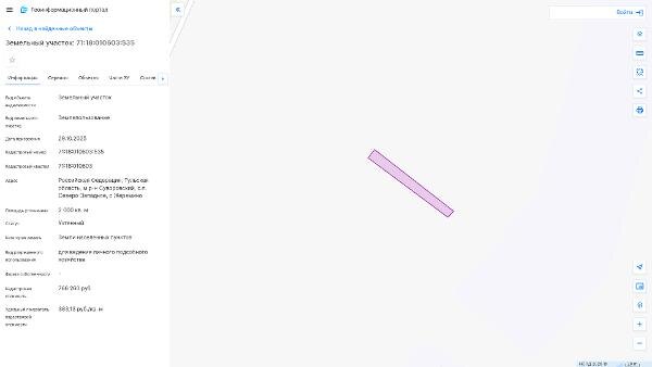 Название: Право заключения договора аренды земельного участка из земель населенных пунктов с кадастровым номером 71:18:010603:535, площадь