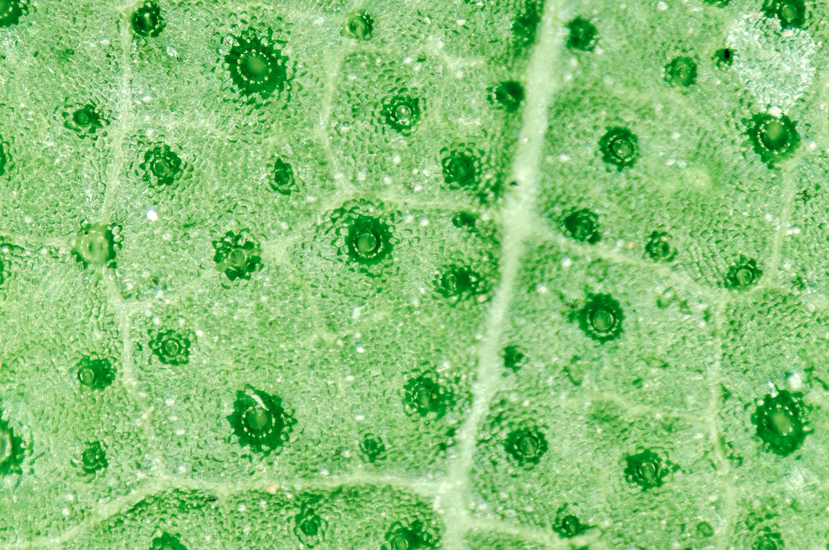 Для невооруженного глаза поверхность листа выглядит сплошным, герметичным барьером. Это необходимая защита, без которой влага из тканей испарилась бы за считанные минуты. Однако для фотосинтеза растению необходимо поглощать углекислый газ из атмосферы. Эту инженерную дилемму — как впустить воздух, но не выпустить воду — решают устьица, микроскопические клапаны, расположенные преимущественно на нижней стороне листа. Анатомически устьице представляет собой щель, образованную двумя специализированными замыкающими клетками. В отличие от обычных клеток эпидермиса, они работают как активная гидравлическая система, управляемая внутренним давлением (тургором). Механизм их действия основан на неравномерном утолщении клеточных стенок: та стенка, что обращена к щели, гораздо толще и жестче, чем внешняя. Когда растению доступна вода и светит солнце, в замыкающие клетки активно закачиваются ионы калия, что заставляет воду устремляться внутрь осмотическим путем. Клетки раздуваются, но из-за жесткого
