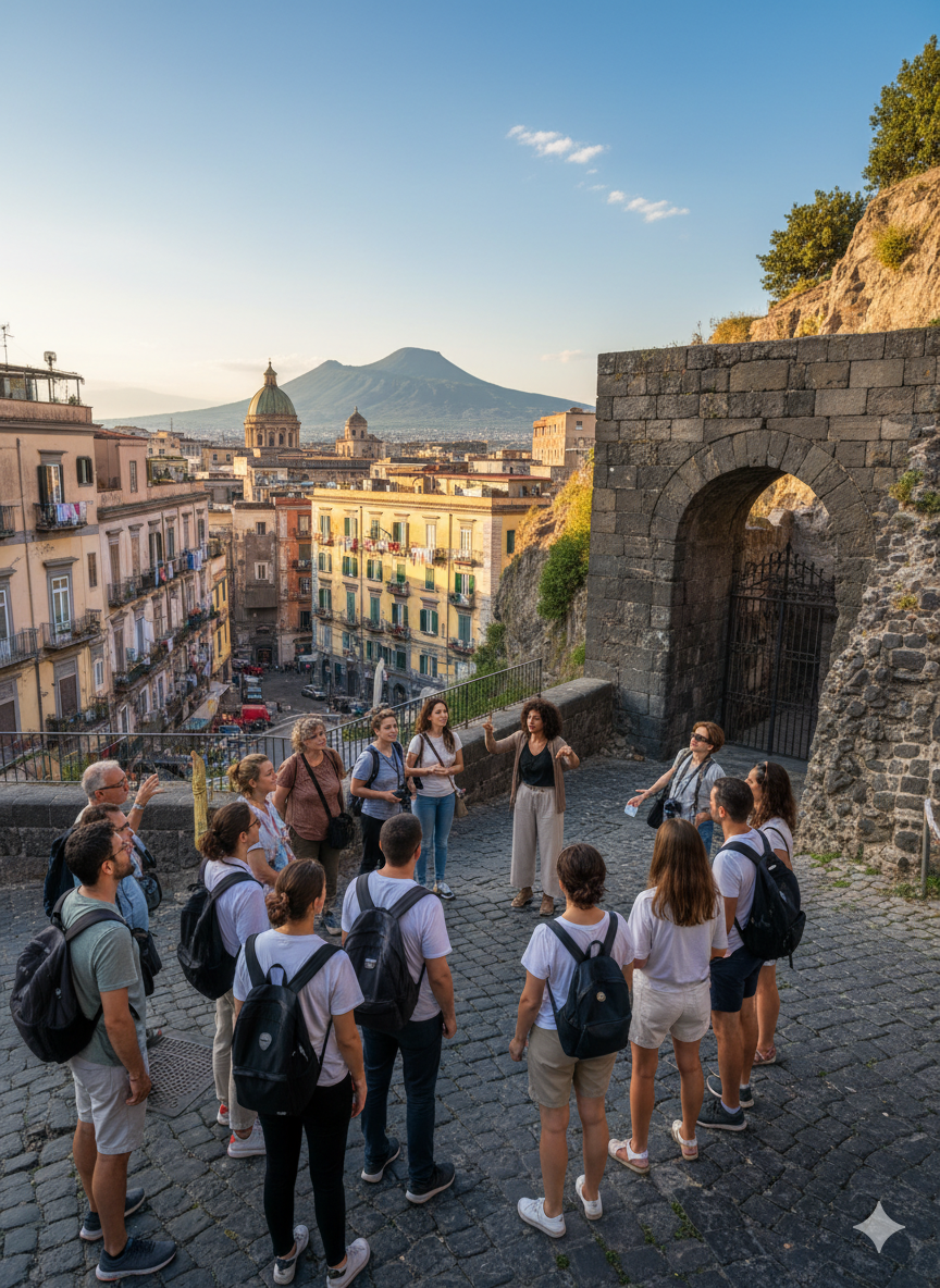 Звездообразная крепость на вершине холма Вомеро — лучшая смотровая площадка Неаполя. Отсюда весь город, залив, Везувий и острова Капри и Искья видны как на ладони, и это зрелище стоит подъёма.