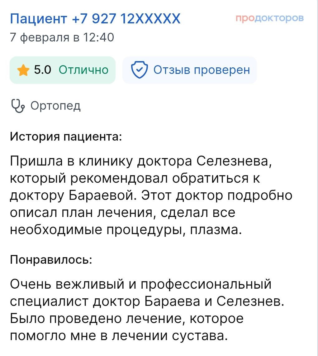 Нам всегда приятно получать от вас обратную связь 🫶 📣НАПОМИНАЕМ Открыта запись на приём к нашим специалистам: 🔹Травматолог-ортопед 🔹Невролог 🔹Терапевт 🔹Нейрохирург 🔹Специалисты лечебного медицинского массажа 📱 Узнать подробнее о специалистах и услугах клиники можно на сайте - https://www.seleznevclinic.ru/?utm_source=tg или у администратора по телефону +7(8452)34-71-04