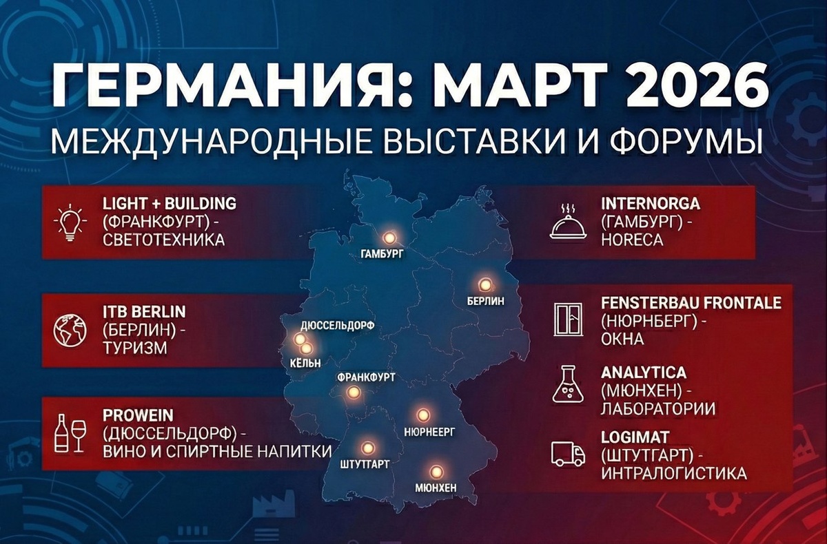 В первой половине марта 2026 года в Германии пройдет серия крупных выставок: от охоты и встраиваемых систем до туризма и светотехники