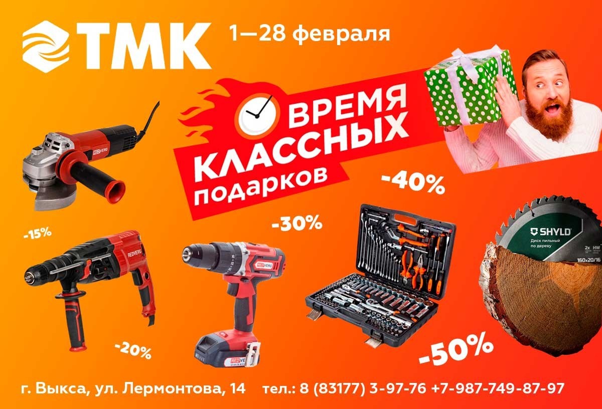 С 1 по 28 февраля магазины «ТМК Инструмент» и «Вездеходов» объявляют акцию «Время классных подарков». Что вас ждёт: ✅ скидки на питбайки, мотоциклы, мопеды, ✅ действуют скидки на ряд позиций, ✅ продолжается распродажа поликарбоната, ✅ большое поступление электровелосипедов и электротрициклов. 🛴 Также продолжается акция ВЕЛОЛЕТО: скидки на все велосипеды и самокаты. 🛠 Торговая компания «ТМК Инструмент» — официальный дистрибьютор брендов Bosch, DeWalt, Makita, STIHL, Redverg, Sparky, B&D, Husqvarna, Fiac, Concorde, «Квалитет» и других. Здесь можно арендовать профессиональные инструменты (электро-, пневмо-, бензо-) и строительное оборудование. 🏍 В магазине «Вездеходов» представлен большой выбор мотобуксировщиков и снегоходов. Также в ассортименте — мотоциклы, квадроциклы, скутеры, гироскутеры, прицепы, лодочные моторы и многое другое. Адрес: Выкса, ул. Лермонтова, д. 14, с 8:00 до 20:00. Телефоны: +7 (83177) 3-97-76, +7 (987) 749-87-97. Реклама: ИП Тата...