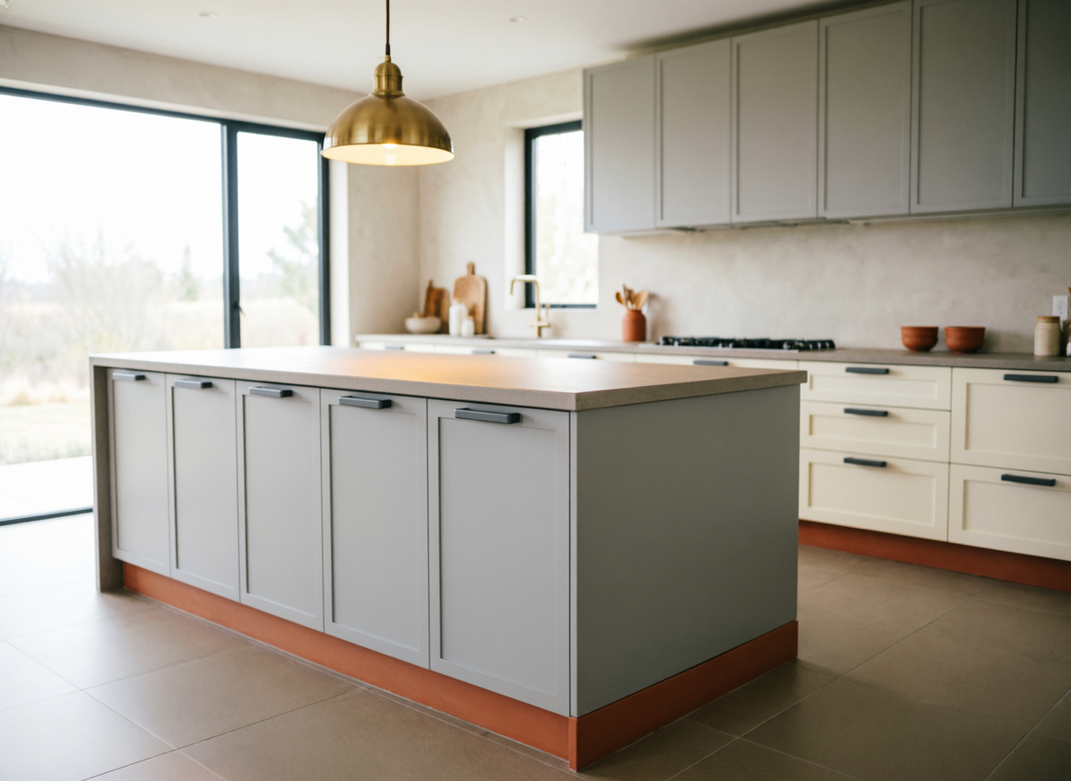 Выбор оттенков зависит от освещения и площади помещения. Для кухонь с южными окнами подойдут холодные пепельно-серые или серо-голубые - они освежают воздух, не создавая эффекта перегрева в летние дни, и хорошо сочетаются с кондиционированным климатом. Тёплые молочные или бежевые спасают северные кухни, где солнца мало: они компенсируют серость пасмурных зим, делая пространство мягким и гостеприимным даже в короткий день. На площадях до 8 квадратных метров берите самые светлые варианты, чтобы не сжимать объем, а в более просторных добавляйте серый подтон для баланса и зрительной фиксации границ.