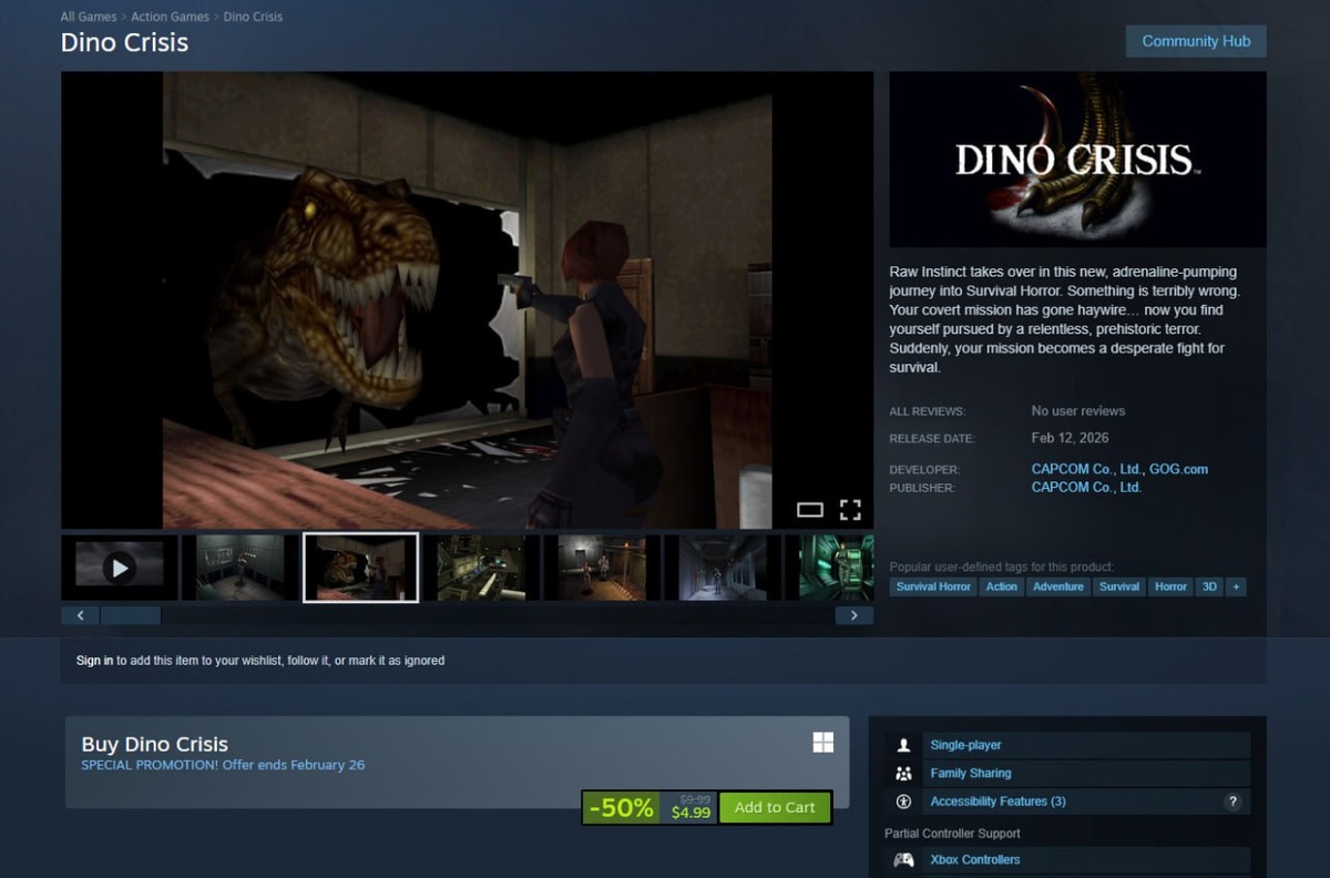 Оказывается, Capcom тихонечко выпустила Dino Crisis и Dino Crisis 2 в Steam со скидкой в 50%