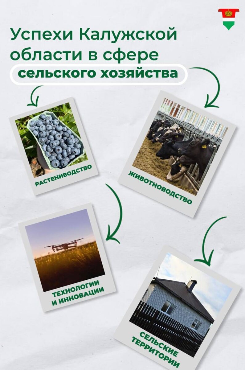 Состоялась отчётная коллегия регионального Минсельхоза. Участники подвели итоги работы за прошлый год и обсудили стратегии развития до 2030 года. Растениеводство 🟢Установлен исторический рекорд по масличным культурам – 45,7 тыс. тонн, прирост составил 40% 🟢Калужская область – в топ-10 регионов России по двум направлениям: по урожайности кукурузы на зерно и сои 🟢Рекордный сбор плодово-ягодной продукции – 8 тыс. тонн, прирост – в три раза Животноводство 🟢Регион полностью обеспечивает себя мясом и молоком. В 2025 году произведено около 620 тыс. тонн молока (+7%) 🟢По среднему надою на одну корову Калужская область занимает 1 место в ЦФО и 2 – в России 🟢В Малоярославецком округе открылся научно-производственный селекционный центр в скотоводстве Технологии и инновации 🟢Формируется отряд беспилотных авиационных систем. Специалисты уже прошли обучение управлению дронами 🟢Начинается работа с тяжёлыми БПЛА для борьбы с борщевиком Развитие сельских территорий и кадровый потенциал 🟢1,