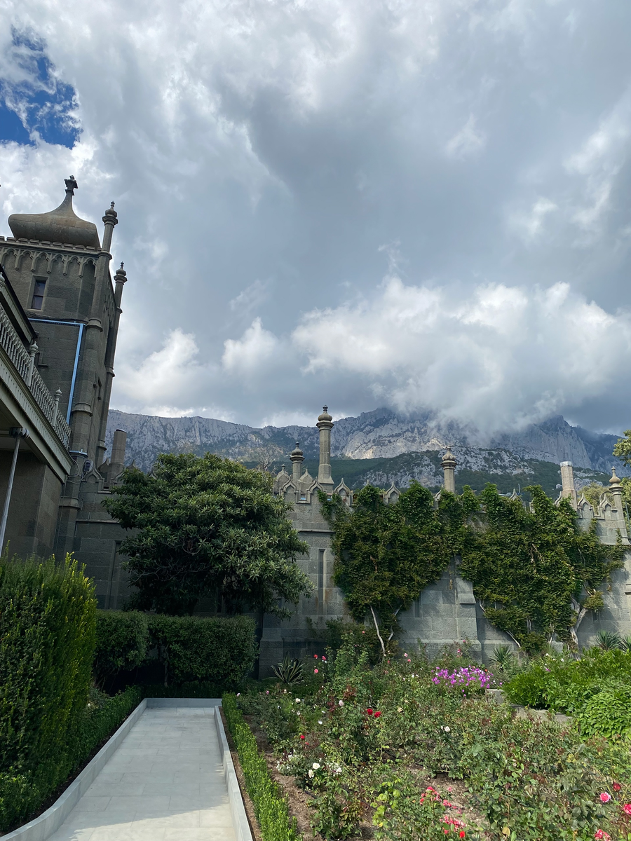 Я очень хотела увидеть львов, а так как они расположены на Южных террасах Воронцовского дворца, то подойти к ним можно, только купив билет на экскурсию.
