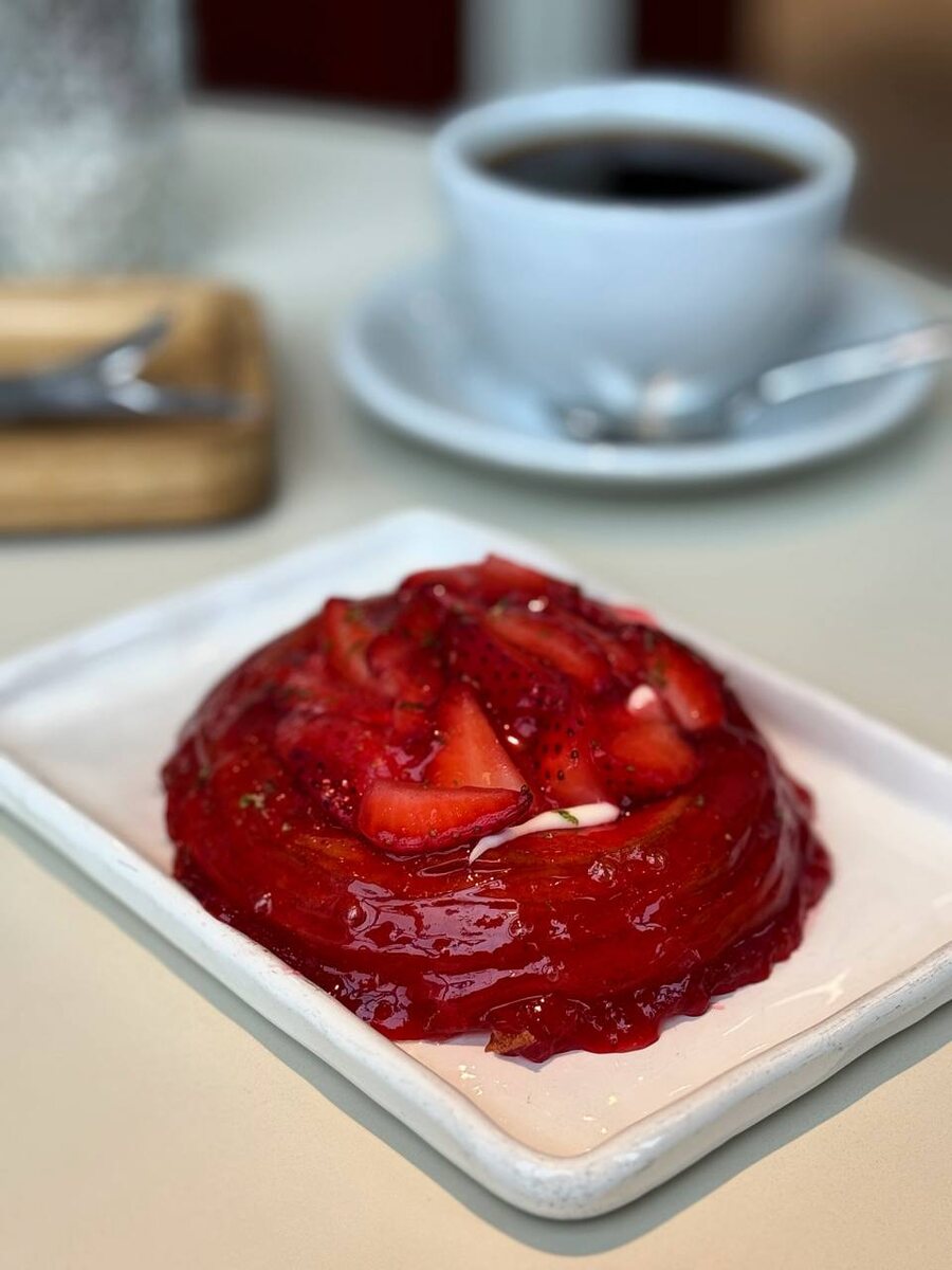 Продолжаю ревизию булок в «Limbo Мануфактура» на Электрозаводской: на очереди дэниш с клубникой, весьма удачный