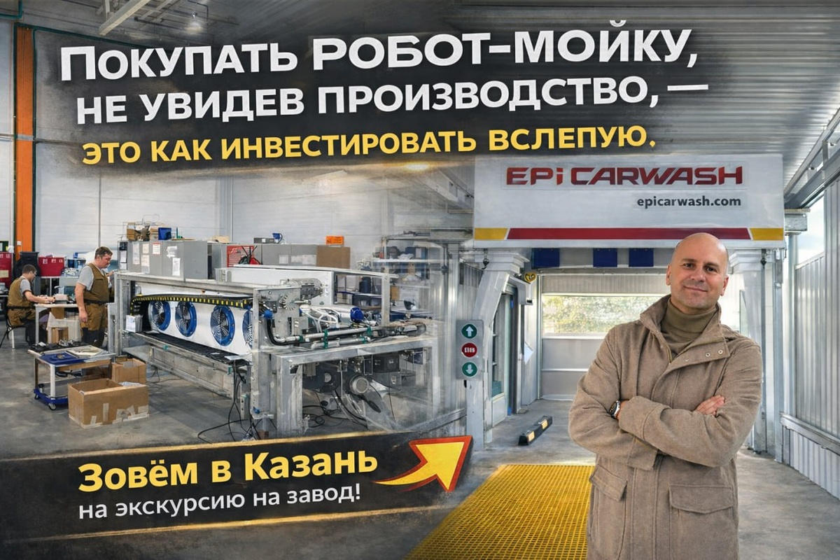 А можно приехать и посмотреть, как он рождается. На экскурсии в Epicarwash мы показываем внутреннюю кухню без грима: цех, сборку, тесты, давление на форсунке, расход воды, слабые места и то, как мы их усилили. Показываем действующую мойку и реальные цифры: выручку, средний чек, загрузку, экономику по расходам. Не «потенциал», а факт. Тем, кто приезжает, делаем персональный расчет под ваш участок, трафик и модель запуска. Вы уезжаете не с буклетом, а с пониманием, сколько можете зарабатывать. Покупать робот-мойку, не увидев производство, — риск. Это инвестиция, а не импульс. В эту пятницу слот уже занят. Есть свободные окна на следующей неделе. Кто планирует приехать — напишите в комментариях👇🏻