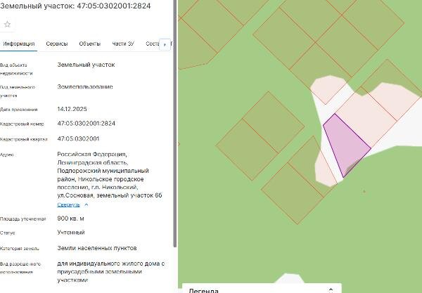 Название: Земельный участок с кадастровым номером 47:05:0302001:2824, площадью 1 200 кв