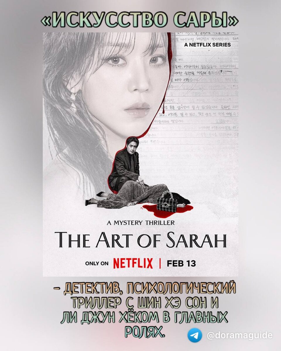 Все 8 серий сериала выйдут 13 февраля 2026 года 🎬 Ключевая информация о проекте · Оригинальное название: The Art of Sarah / Lady Doir (레이디 두아). · Дата премьеры: 13 февраля 2026 года. · Формат: 8 эпизодов по ~60 минут. · Жанр: Детектив, психологический триллер. · Платформа: Netflix (эксклюзивно). 🔍 Сюжет: жизнь, построенная на лжи В основе сюжета — история Сары Ким (Шин Хэ Сон), которая создала себе фальшивую личность успешной бизнес-леди из мира люкса. Её тщательно выстроенная жизнь рушится, когда в канализации престижного района Сеула находят тело женщины с изуродованным лицом. Расследование поручено детективу Пак Му Гёну (Ли Джун Хёк). Он быстро обнаруживает, что о Саре Ким не существует никаких записей, а у неё было множество имён и биографий. Его преследование этой «призрачной» женщины раскрывает два абсолютно разных её портрета: гламурную икону, живущую в роскоши, и изнурённую тяжёлым трудом женщину в поношенной одежде. Ключевой вопрос сериала, который задаёт сама Сара в т