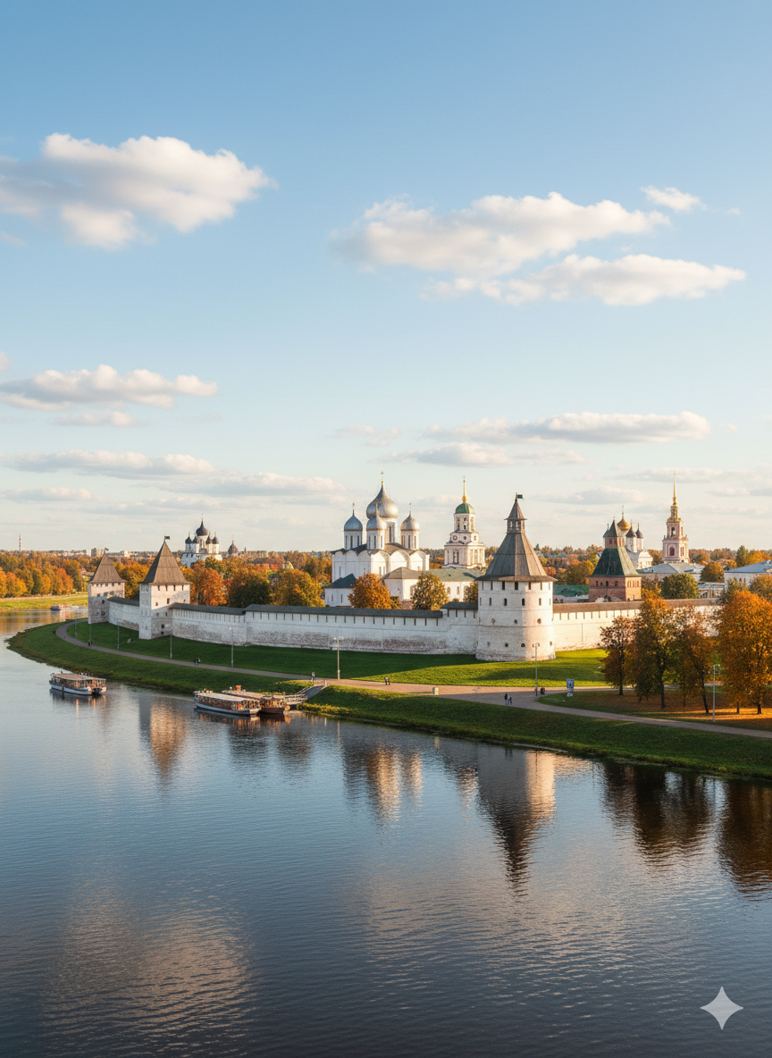 Новгородский кремль — древнейший из сохранившихся в России, сердце города и отправная точка любого маршрута. Именно отсюда стоит начинать знакомство с Великим Новгородом, ведь за мощными кирпичными стенами скрывается целый мир — от древнейших соборов до уютных музейных экспозиций.