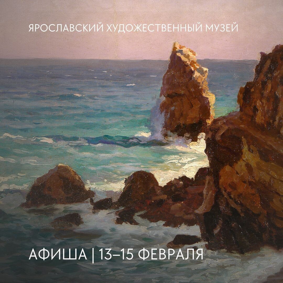 : 📍Музей зарубежного искусства. Советская площадь, 2 13 февраля в 18:00, 14 и 15 февраля в 17:00 – сборные экскурсии по выставке «Наполеон. От триумфа до крушения» 📍Губернаторский дом. Волжская набережная, 23 14 и 15 февраля в 15:00 – сборные экскурсии по выставке «А море ждет нас» 14 февраля в 16:00 – музейный синематограф. Показ фильма «Императрица Мария Федоровна и ее учитель А. Боголюбов» 📍Дом на Новинской. Тутаев, ул. Ленина, 59/8 14 февраля в 15:00 – сборная экскурсия по экспозиции Романово-Борисоглебского городского общественного банка 📍Митрополичьи палаты. Волжская набережная, 1 14 февраля в 15:00 – лекция «Книги в ярославской живописи» 15 февраля в 13:00 – сборная экскурсия по экспозиции «Древнерусское искусство XIII–XVII веков»