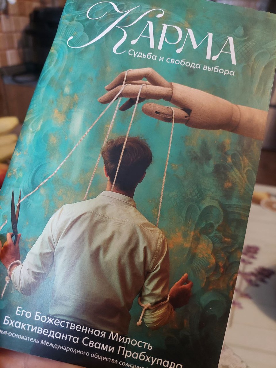 ? Я книгу Шрилы Прабхупады "Карма. Судьба и свобода выбора." О чем она? Прежде всего о законе причинно-следственной связи, влиянии наших прошлых действий на нынешнюю жизнь. Когда погружаешься в знания глубже, то понимаешь, что жизнь необычайно справедлива, ничего в ней нет случайного или незаслуженного. Приходит осознание возможности изменения своей судьбы через осознанные действия и духовную практику. И каким удивительным образом перекликаются высказывания и изречения святых всех времен и всех традиций. Святой Василий Великий говорил: Не говори: это произошло случайно, а это встретилось само собою. В том, что существует, нет ничего беспорядочного, ничего неопределенного, ничего напрасного, ничего случайного... Сколько волос на твоей голове? Ни один из них не забыт у Бога. Видишь ли, как ничто, даже самое малое, не избегает надзора ока Божия? #читаемспользой #книгиожизни