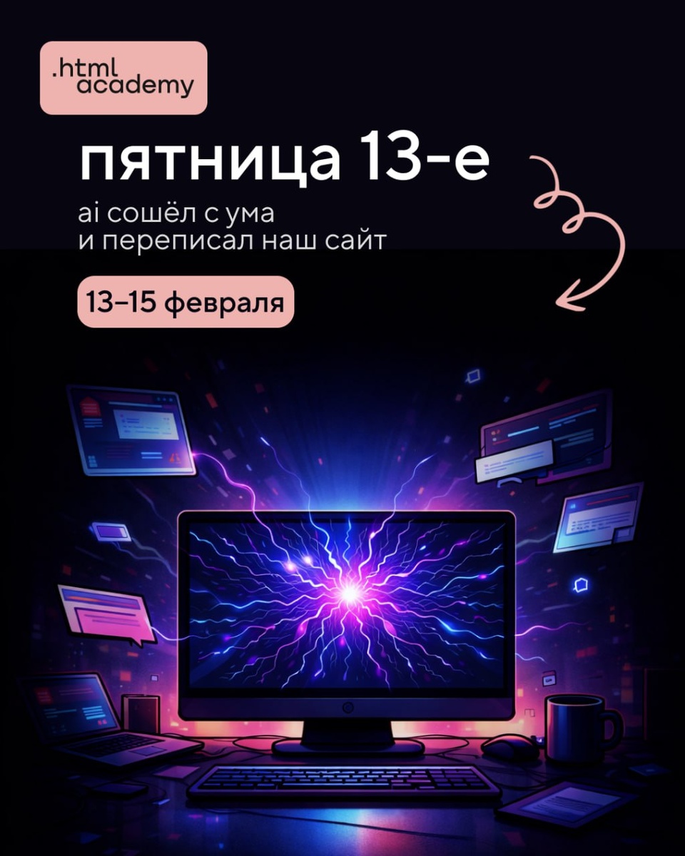 % Наш AI-агент «переписал» сайт. Кнопки съехали, блоки перепутались, логика поплыла. Мы не стали чинить — мы сделали из этого квиз. Пять вопросов на логику и внимательность. Найдите, где система сломалась, — и получите скидку: 1️⃣ мидл-курсы и тренажёры — 50%, 2️⃣ профессия под работодателя — 20%, 3️⃣ лайт-профессии — две по цене одной за 29 000 ₽, 4️⃣ одна лайт-профессия — 22 000 ₽. Квиз займёт две-три минуты. Скидки действуют с 13 по 15 февраля. 🎁 Пройти квиз: https://mrqz.me/friday13
