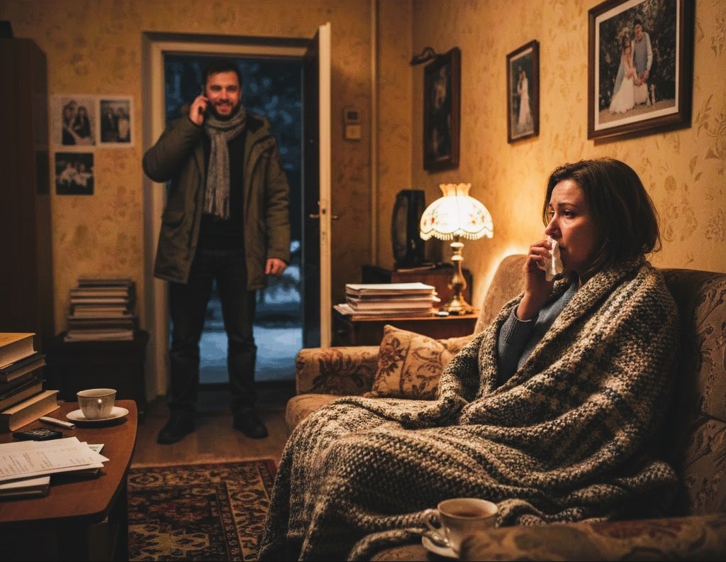 Всё изменилось в обычный серый четверг. Ольга вернулась из школы с гудящей головой. К вечеру термометр показал 38,7°C. Кости ныли, а горло словно засыпали битым стеклом. Она с трудом доползла до кухни, чтобы налить себе воды, когда в дверях повернулся ключ.