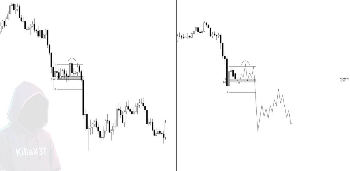 Сейчас активно разгоняют идею, что если Bitcoin повторит историческую модель price action, то мы увидим LTF-дистрибуцию перед следующей ногой вниз. Логика следующая. После импульсного падения цена: — формирует рейндж — удерживается выше 0.5 — консолидируется под 0.382 — делает вынос внешних хаёв — и только потом разворачивается вниз На картинке как раз сравнение с прошлым аналогом. И ключевой момент — sweep внешних максимумов ещё не произошёл. Что это значит? Если рынок действительно следует этому сценарию, то перед дальнейшим падением: 1. Нам могут показать ложный пробой вверх. 2. Собрать ликвидность над локальными хаями. 3. Создать ощущение «разворота». 4. И уже после — продолжить снижение. Это классическая фаза распределения на младшем ТФ: цена не падает сразу, она выматывает. Но здесь важно быть скептичным. История рифмуется, но не копируется. Рынок знает, что большинство ждёт «вынос перед сливом». Поэтому вопрос не в том, повторится ли фрактал, а в структуре: — есть ли