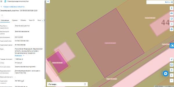 Название: Земельный участок с кадастровым номером 51:19:0030138:250 площадь 1000 по адресу Российская Федерация, Мурманская область