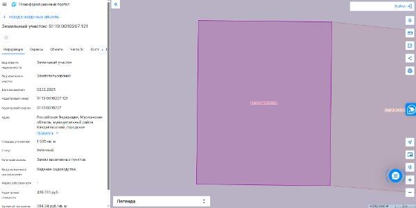 Название: Земельный участок с кадастровым номером 51:19:0010207:121 площадь 1500 по адресу Российская Федерация, Мурманская область