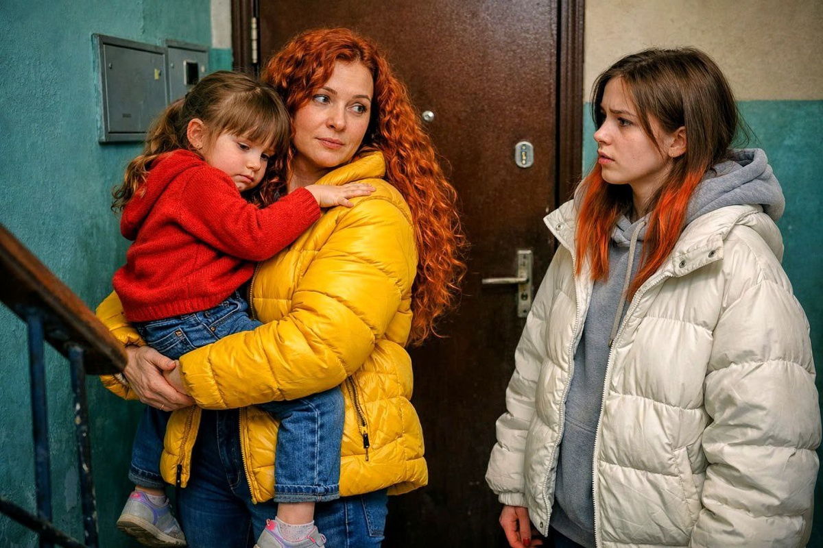 - Мам, я возвращалась из магазина и нашла Катю на лестничной площадке. Она сидит у нашей двери без куртки.