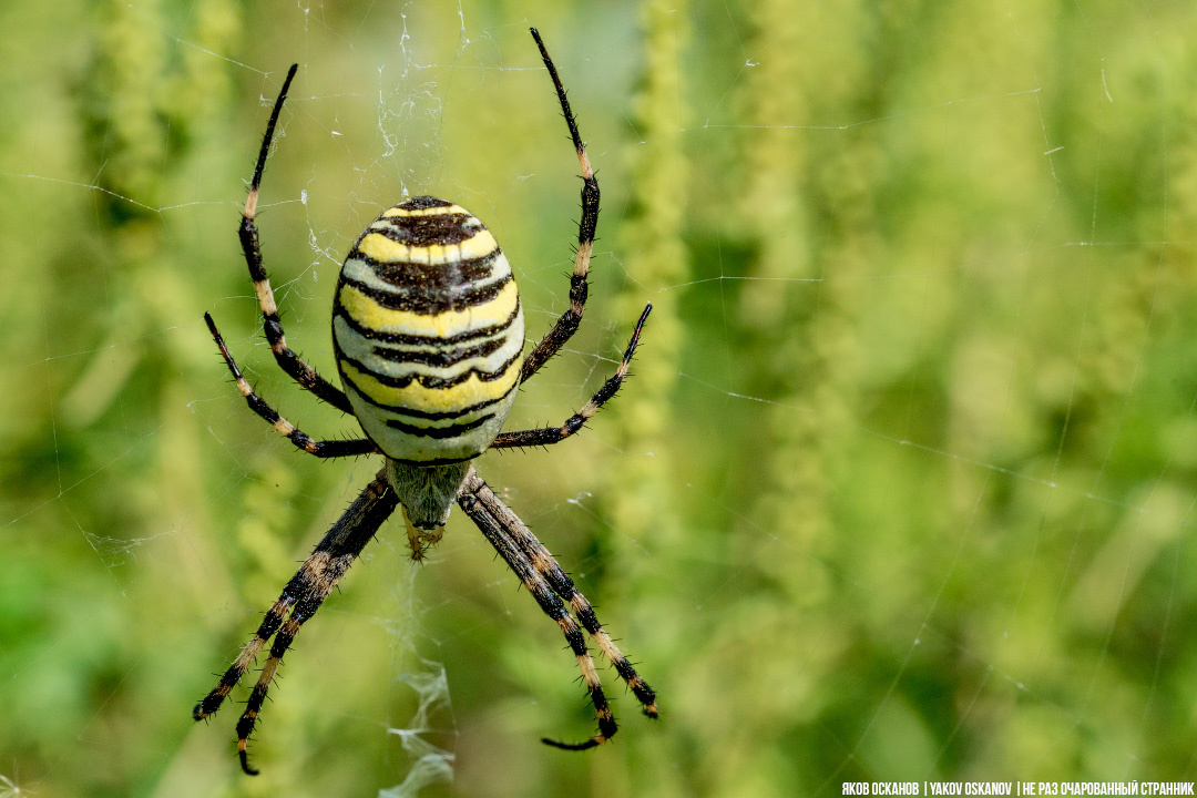 Привет, мои дорогие любители необычной земной фауны. Замечали ведь: стоит существу облачиться в жёлто-чёрный костюм, как внутри что-то щёлкает — лучше не трогать. Природа давно выработала этот код: яркое часто означает ядовитое. И действительно, предупреждающая окраска — честная стратегия. Если ты опасен или неприятен на вкус, выгоднее сразу об этом сообщить. Хищник попробует один раз — и запомнит на всю жизнь. Реклама без повторных затрат. Но сегодня речь о существе, которое выглядит грозно, а на деле куда скромнее — аргиопе Брюнниха (Argiope bruennichi), она же паук-оса. Уже по внешности понятно, почему в детстве мы обходили его стороной. Я отлично помню, как мы считали этих пауков чуть ли не смертельно ядовитыми. В бурьяне возле дома каждый находил «своего» и таскал ему добычу — бабочек, кузнечиков, чтобы вырастить собственного монстра. Соревновались, чей будет крупнее. Странное детство, но чего ожидать от мальчишек, которые выписывали "Юный натуралист" и жили обществе с установкой