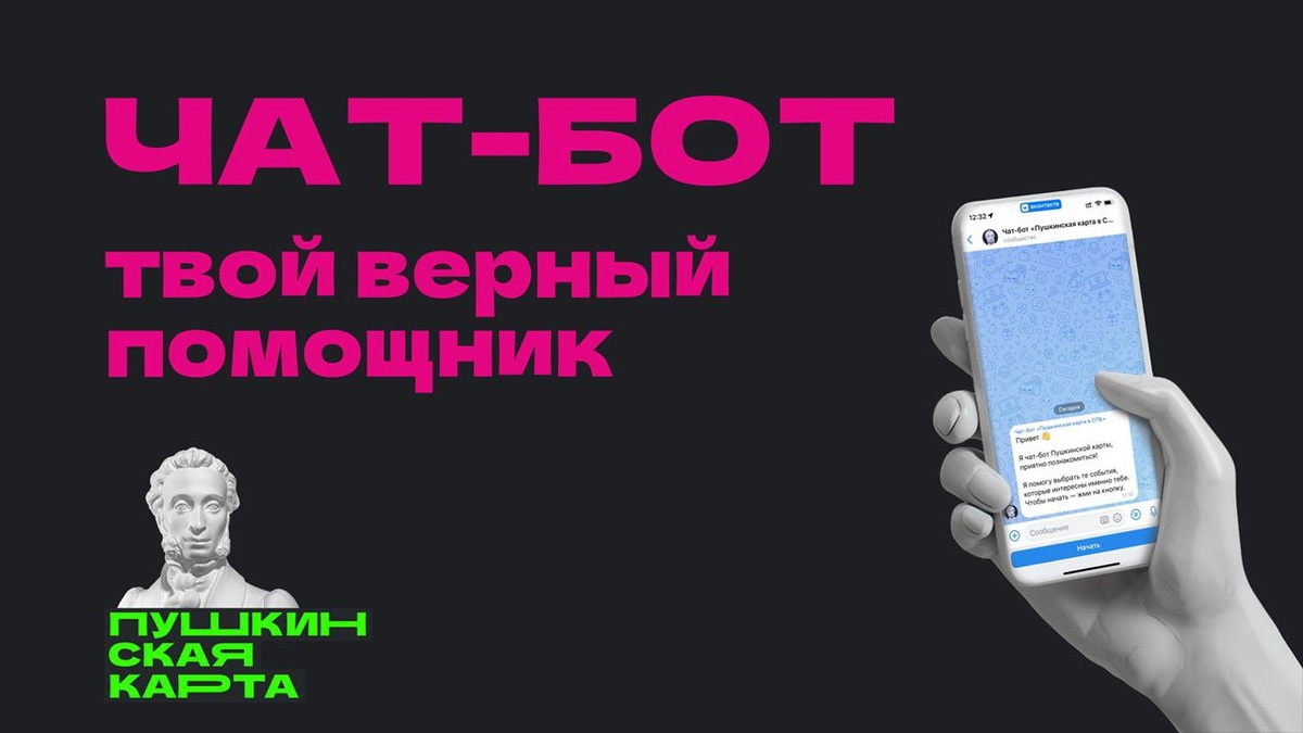 ⚡️ Пользоваться программой «Пушкинская карта» стало ещё проще: у неё появился собственный чат-бот, который помогает быстро находить культурные события рядом с вами. Сервис интегрирован с платформой Культура.РФ и показывает актуальные афиши без перехода на сайты и долгого поиска. Чат-бот работает в мессенджере MAX и в социальной сети ВКонтакте. Достаточно указать геопозицию – и он подберёт спектакли, выставки, концерты, лекции и кинопоказы в вашем регионе. Напомним, «Пушкинская карта» – это государственная программа для молодёжи от 14 до 22 лет, позволяющая бесплатно посещать учреждения культуры по всей стране. Для получения карты необходимо заполнить заявление на портале Госуслуги, далее – подтвердить свою учётную запись с помощью онлайн-банков или в центрах обслуживания. Ежегодно на ваш счёт зачисляется 5000 рублей. Этими средствами можно пользоваться в течение календарного года.