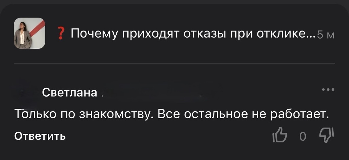 Почему приходят отказ при отклике на вакансию, где вы подходите на 100%?https://dzen.ru/a/aKLrczJuW1FG-Bl3