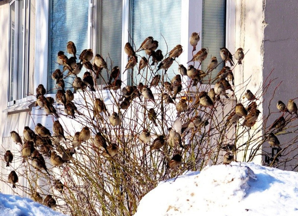 Воробей домовый с крупным тёмным пятном на грудке – чем он круче других воробьев в стайке