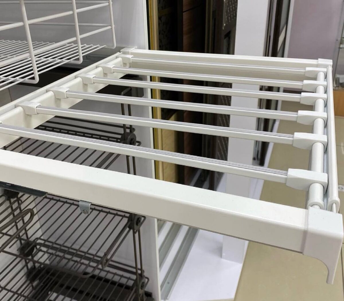 ! Это решение, которое избавит ваших заказчиков от надоевших проблем😀 ✓ Избавляемся от заломов на брюках ✓ Сохраняем стрелки в идеальном состоянии ✓ Экономим время на глажке ✓ Больше не ищем упавшие вниз вещи ✨ Особенности: 🏷️съёмные перекладины; 🏷️прорезиненная поверхность (вещи не скользят и не падают); 🏷️направляющие полного выдвижения с доводчиком. 😉Многие партнеры уже оценили! Отправить каталог? Поставьте + в комментариях. Мы в MAX