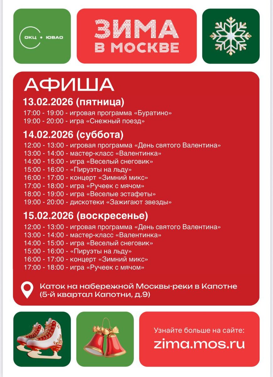 Друзья! Знакомим вас с афишей мероприятий в рамках проекта «Зима в Москве» на ближайшие дни