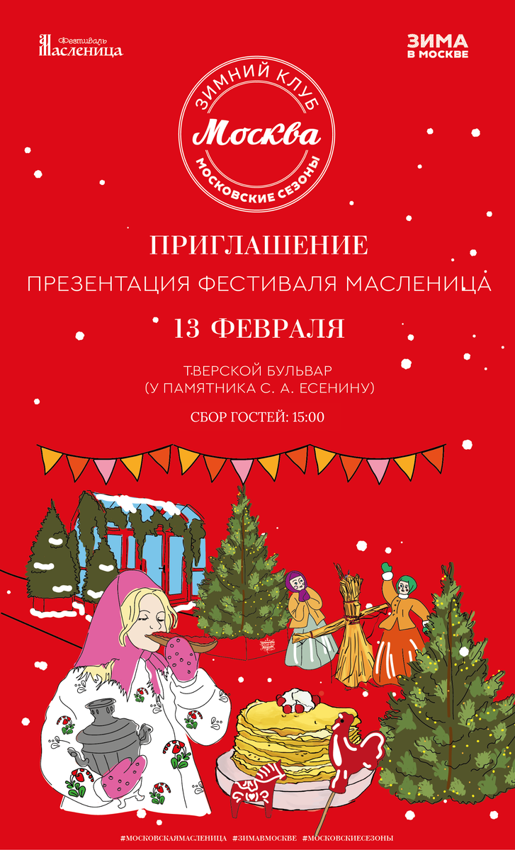 Приглашаем на праздничную площадку «Масленица в Москве» на Тверском бульваре! Не пропустите самое интересное: 🥞 В пятницу, 13.02 с 15:00 до 18:00 в ротонде Frambini можно попробовать уникальный блин от Теремка с начинками из ягод в шоколаде от бренда Frambini. https://t.me/frambini 🥞Всю праздничную неделю с 13 до 22 февраля на Тверском бульваре вас ждут Масленичные гуляния, конкурсы и активности для всей семьи! Приходите праздновать Масленицу на центральную площадку фестиваля и обязательно загляните в наш уютный домик «Теремок» за фирменными блинами и горячими напитками! Время работы площадки с 13:00 до 21:00 🥞 Только на фестивале можно купить бьюти-блинчик «Сударыня KRYGINA»! Вместе с бьюти брендом мы сделали блин с декором из сахарной пудры: сверху его украшает снежный рисунок, но внутри прячется горячая вишня. Это блин про смену сезона и возвращение цвета в жизнь, как и сам праздник Масленица - зима ещё видна снаружи, но весна уже близко! Покупателей этого блинчика ждут приятные