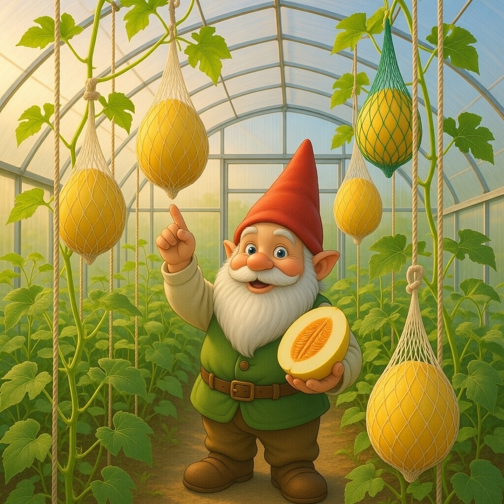 Конечно, первый раз подвязывать дыни в сетки может показаться хлопотным делом. Но поверьте старому гному: стоит один раз попробовать, и вы больше не захотите выращивать дыни по-другому! Особенно если у вас небольшая теплица и каждый квадратный метр на вес золота.