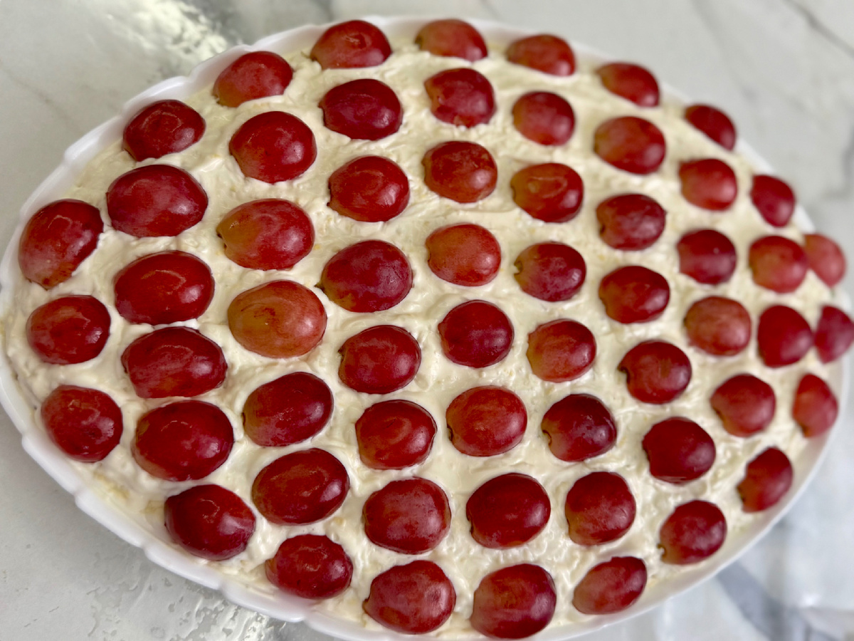 Салат "Тиффани" - это блюдо, которое достойно смотрится на любом праздничном столе. Вариантов этого салата немало, неизменным остаётся то, что верх этого блюда оформляется половинками винограда.