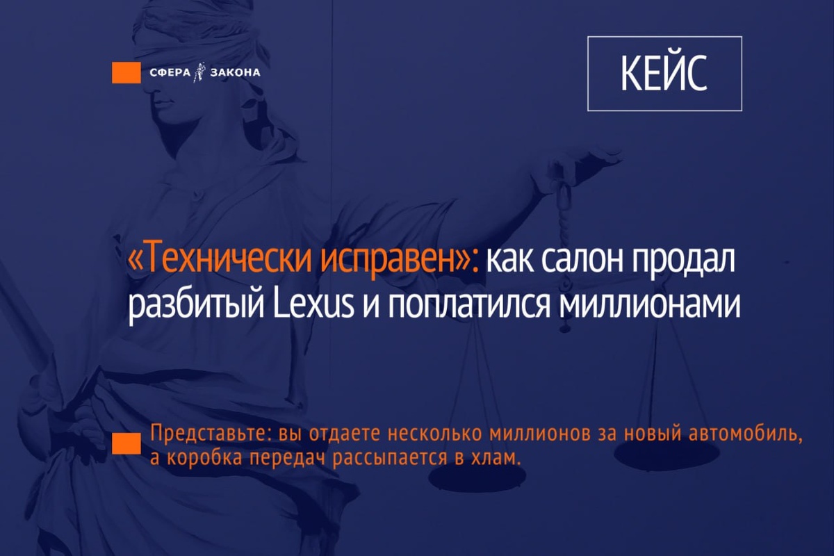 Представьте: вы отдаете несколько миллионов за новый автомобиль, а спустя всего полторы тысячи километров пробега коробка передач рассыпается в хлам. Страшно? Именно это произошло с нашей доверительницей. 11 мая 2023 года Екатерина (имя изменено) приобрела новый Lexus RX 350 за несколько миллионов рублей. Продавец клятвенно заверил в договоре, что автомобиль «технически исправен». Однако радость владения длилась недолго. Уже 23 мая, когда пробег составлял всего около 1500 км, произошла поломка АКПП. В сервисном центре «Тойота» Екатерину ждал шок: на корпусе коробки — трещины, в масле — металлическая стружка, левый приводной вал разрушен. Вывод специалистов был однозначен: это последствия сильного механического удара (ДТП или падения с высоты), а отсутствие повреждений на подвеске и диске говорило о том, что детали перед продажей заменили на новые. Екатерине продали отремонтированный после аварии автомобиль под видом нового. Мы направили продавцу официальную досудебную претензию с тре