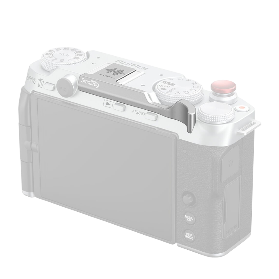 Это аксессуар от бренда SmallRig, предназначенный специально для камеры Fujifilm X-M5 в серебристом цвете. Он улучшает эргономику, предоставляя удобную опору для большого пальца, что делает съёмку комфортнее во время длительного использования.