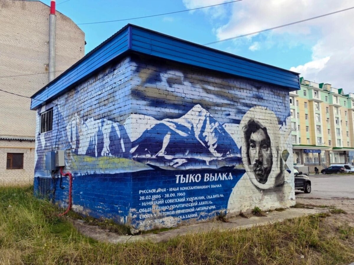 В столице Ненецкого автономного округа на трансформаторной будке на Пионерской улице появился мурал, посвященный знаменитому ненецкому художнику и общественному деятелю Тыко Вылке. Изображение нанесли в год 140-летия со дня его рождения. Идея арт-объекта родилась в рамках проекта «Туристический маршрут по городу Нарьян-Мару». Его авторами выступили Центр развития бизнеса НАО и участники туристско-рекреационного кластера региона. В 2020 году проект победил во Всероссийском конкурсе «Мастера гостеприимства» и получил грант Росмолодежи на реализацию. Кандидатуру для мурала выбирали жители округа путем народного голосования. Помимо Вылки, в числе претендентов были художник Александр Борисов и поэт Прокопий Явтысый. Выбор северян пал на основоположника ненецкой профессиональной живописи. Мурал выполнен профессиональными художниками и занимает всю плоскость фасада. Он сочетает портрет Тыко Вылки и фрагменты его картин.