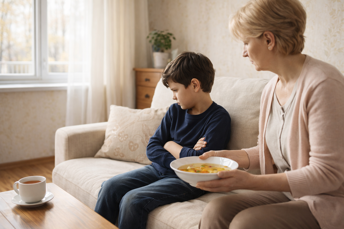 В дверях стояла Людмила. Бледная. С пакетом еды в руках. Смотрела на внука.