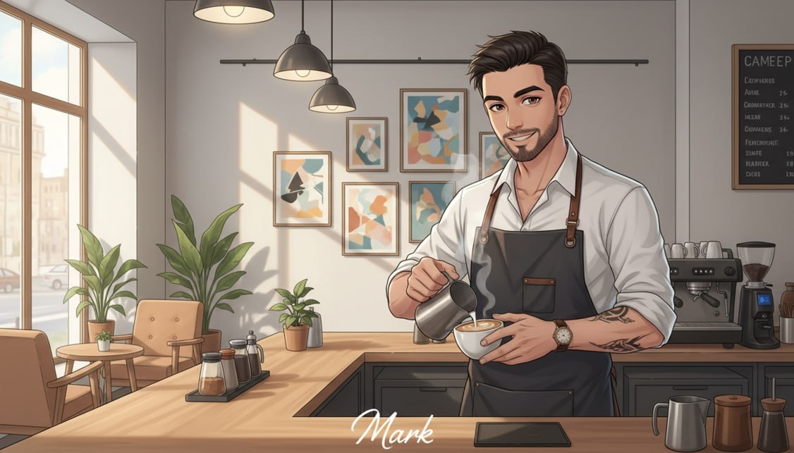 » Марк только устроился бариста. Его миссия: не слить кофе, нервы и получить скидку для вас. Главный герой: Марк, молодой энтузиаст, который думал, что кофе — это просто эспрессо и латте. Его блокнот — интерактивный элемент, куда игрок помогает записывать кофейные лайфхаки от владельца и странные предпочтения клиентов. Кофейня «Ложа Обжарщика» на Патриарших. Владелец — дядя Жора, в прошлом обжарщик, что-то не поделил с партнерами и ушёл "в поля", мудрый, с юмором, говорит загадками и раздает подарки за сообразительность. Помоги Марку освоиться с работой, получи много скидок и узнай кофе лучше! Что это и зачем, писал вот здесь. Опрос по первой сцене здесь. (предложения принимаются и берутся во внимание на любом этапе проекта!)