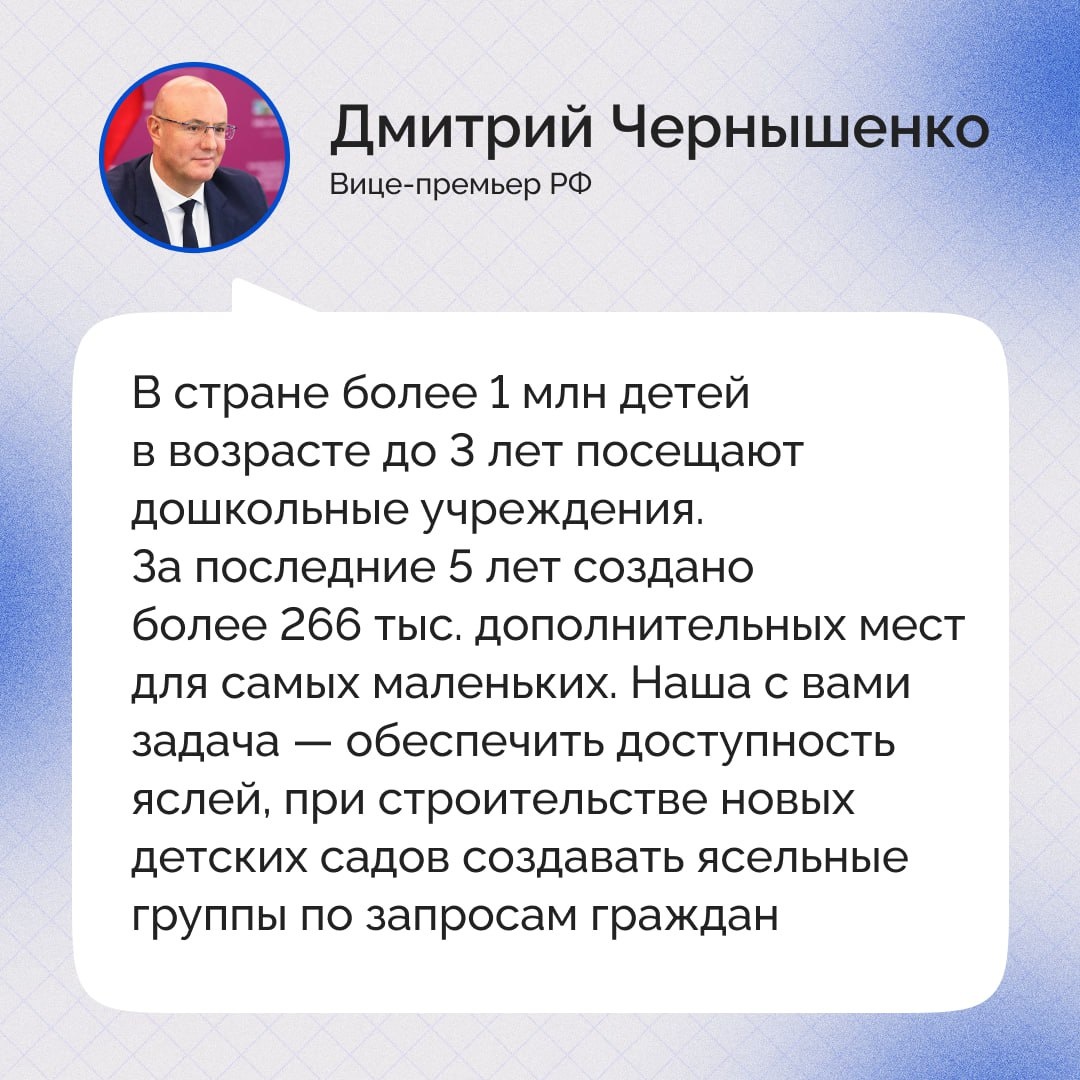 Вице-премьер РФ Чернышенко призвал глав регионов открывать ясли, если на это есть запрос жителей
