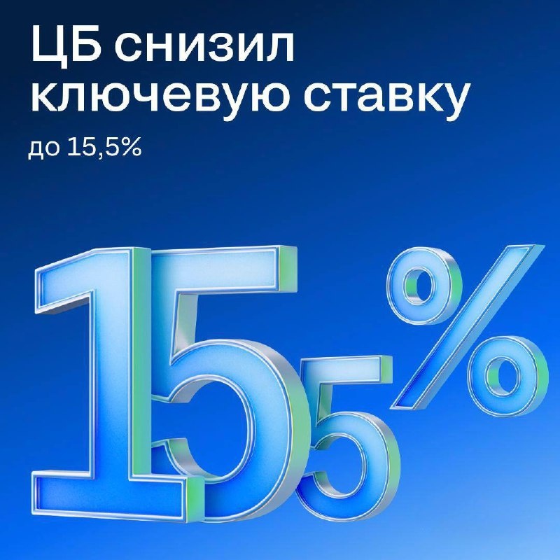 ❗️💲 Центробанк снизил ключевую ставку до 15,5% годовых