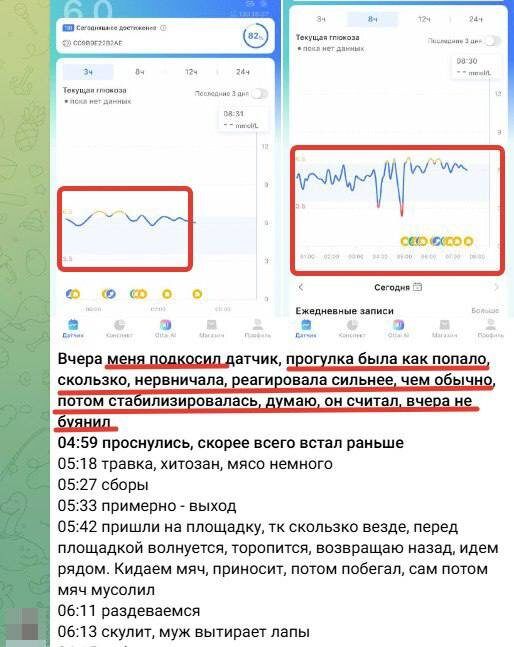 Собаки считывают ваше внутреннее состояние за 0,2–0,3 секунды. #живитетеперьсэтим Я говорю в своих блогах постоянно: ваше состояние влияет на здоровье питомца. Но для многих это просто набор букв. «Опять она про это». Их мозг реально обрабатывает запах ваших гормонов, напряжение мышц, ритм дыхания и сердцебиения быстрее, чем вы успеваете подумать: «Я спокойна». Они скулят, лижутся, делают садки, их «разносит», включается СДВГ, непослушание. Собаки - яркое зеркало вашего состояния. А с кошками тоньше. Они считывают вас еще быстрее. Но не бегут к вам. Замирают. Прячутся. Ходят мимо лотка. Вы думаете: «вредничает», «назло». А они просто живут в вашем стрессе. Раньше вы не могли этого знать. Возможно, никто не объяснял. Теперь мы можем показать это в цифрах. На фокус-группе по мониторингу глюкозы мы видим: ✊🏻как сахар питомца прыгает следом за вашим пульсом ✊🏻какая еда гасит или раскачивает качели ✊🏻какой стресс или тренинг бьет по здоровью Владельцы начинают это видеть. Пон