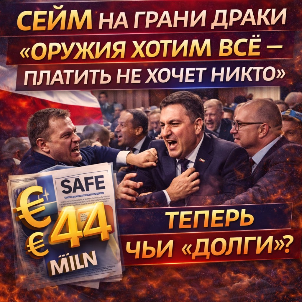 ”. 13 февраля 2026 г. парламент Польши принял закон, открывающий доступ к механизму SAFE объёмом до 44 млрд евро на перевооружение и поддержку ВПК. Документ предусматривает создание фонда под управлением нацбанка, через который будут проводиться средства. Без этого правового механизма подписание кредитного соглашения с ЕК невозможно. Кроме того, закон должен вступить в силу до марта 2026 года, поскольку на этот срок запланировано подписание соглашения с ЕК. Ключевой момент голосования предельно показателен. Коалиция премьера Д.Туска (KO + Lewica + PSL + Polska 2050) за – 236, против (PiS и Konfederacja) – 199. После этого Туск сорвался – заявив, что PiS (прим. – контролирует президента) это «не оппозиция», а «враги независимости». После его спича начались крики и ругань. Между тем, ситуация показательна, ведь в Польше, где все партии продают избирателю тезисы «нужно больше оружия», начинается драка о том, кто будет платить по счетам на десятилетия вперед. Правящая коалиция добавляет: