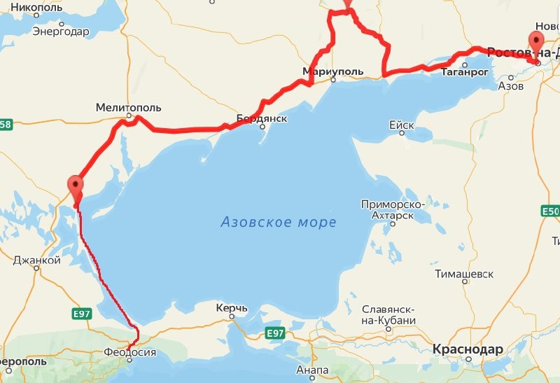 Ростовская область, 13 февраля 2026, DON24.RU. Стоит отметить, что автострада Ростов – Геническ уже существует. По данным карт, длина дороги при поездке на машине составляет 473 км, время в пути без остановок – 7 ч 57 мин. Фото: «Яндекс-Карты» И недавно, как сообщают в «Российской газете», на совещании Совета по вопросам интеграции воссоединенных субъектов в правовую и социально-экономическую системы РФ при Совете Федерации председатель Государственного совета Республики Крым Владимир Константинов предложил проложить автостраду между городами Феодосия и Геническ по Арабатской стрелке. «Строительство автострады Геническ – Феодосия по Арабатской стрелке дало бы невероятный импульс развитию исторических регионов России», – заявил Владимир Константинов. По мнению главы крымского парламента, данный проект не является первоочередным, однако обладает серьезным потенциалом для развития территорий Приазовья. Он также добавил, что инициатива уже прорабатывалась с заинтересованными регионами и се
